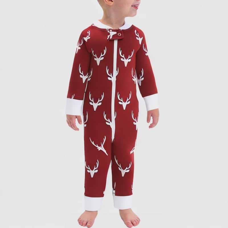This boys' one-piece pajama features a cute printed pattern that adds a playful touch to the overall design, easily creating a warm and lively home atmosphere. The round neckline fits the neck comfortably, providing a natural and comfortable feel without restriction, making it suitable for long periods of sleep or daily activities at home. The elastic cuffs and ankles fit snugly, preventing them from riding up during movement, maintaining a neat appearance and helping to keep warm at night. The front zipper closure is smooth and durable, making it easy and convenient for parents to dress and undress their children.