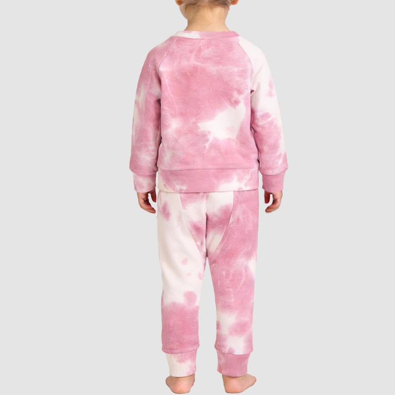 This girls' pajama set features a unique tie-dye design with soft and vibrant colors, combining fashion and individuality while retaining a playful, childlike feel. It's perfect for nighttime sleep or relaxing at home, allowing your child to feel comfortable and at ease. The top has a round neckline and long sleeves that cover the arms, with elastic cuffs for a secure fit and freedom of movement. Side slits add comfort and a touch of style. The pants have a straight-leg design and an elastic waistband for a comfortable fit and unrestricted movement. The entire set is loose-fitting and skin-friendly, balancing comfort and aesthetics, making it an ideal choice for everyday wear at home.