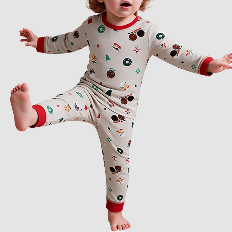 This boys' pajama set features a fun and playful print design, full of childlike charm and energy, creating a relaxed and cheerful atmosphere for your child at home or during sleep. The soft, skin-friendly fabric is comfortable to the touch and highly breathable, protecting your child's delicate skin and ensuring a comfortable night's sleep. The top has a round neck design for easy on and off, with long sleeves covering the arms and elastic cuffs that fit snugly around the wrists, preventing the sleeves from sliding or rolling up and improving warmth. The pants feature an elastic waistband for easy wear, and elastic cuffs at the ankles allow for freedom of movement while keeping your child warm.