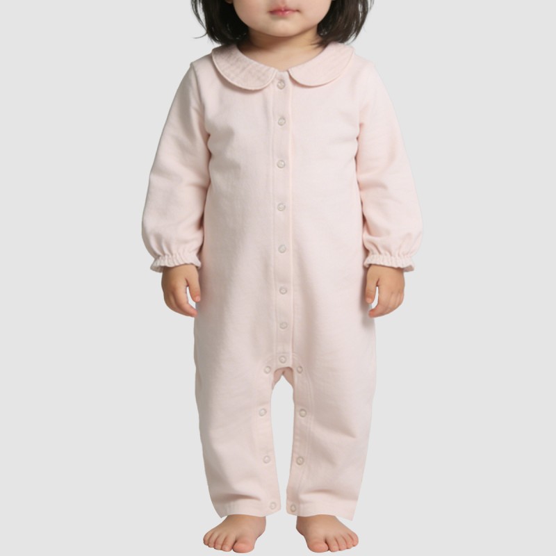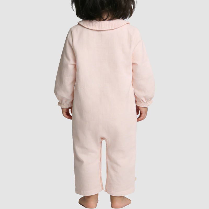 This girls' lightweight one-piece pajama features a minimalist design, offering a comfortable and soft feel against the skin. It's perfect for spring and summer or indoor wear, allowing children to move freely and rest comfortably. The simple yet elegant lapel design adds a touch of sophistication, creating a clean and neat overall look. The long sleeves with elastic cuffs fit snugly without being restrictive, allowing for free movement without slipping. The snap button closure makes it easy to put on and take off, making daily changes quick and convenient. Made from soft and comfortable pure cotton fabric, it's breathable and gentle on the skin, ensuring comfort even with prolonged wear.