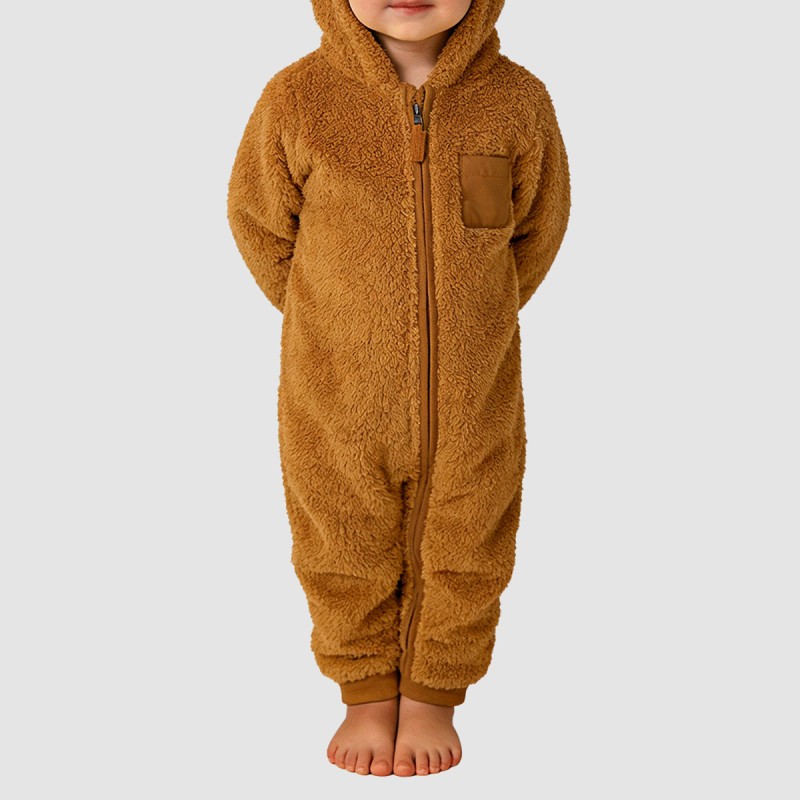 This thickened one-piece pajama for girls is designed for cold weather. It's thick and warm, soft and comfortable, and feels gentle against the skin, keeping your child warm and comfortable while at home, relaxing, or sleeping. The cartoon bear ear hood design is cute and playful, while also providing extra warmth for the head and neck. The front zipper closure makes it easy to put on and take off; the decorative chest pocket adds style and is both fun and practical. The overall loose fit is perfect for children to move freely or rest comfortably.